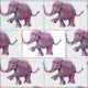 Ce magnifique tissu est composé d'un motif d'un mignon petit éléphant gris et rose peint à la main, avec un tronc et un pied remontés de façon ludique.