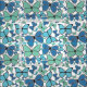 Cette étoffe amusante d'inspiration vintage présente un motif de papillons morpho bleus dans un style rétro dessiné à la main dans des tons bleu vif, bleu moyen et bleu-vert clair, le tout accompagné de noir contre un arrière - plan blanc.