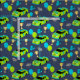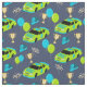 Quelques cadeaux et décors personnalisés pour les fêtes de quatrième anniversaire avec ces tissus à motifs. Il présente des illustrations de voitures de course de style voiture stock en vert citron et bleu vif avec le numéro 4 sur eux et le slogan NEED 4 SPEED. Avec les voitures sont coordonnés le vert citron et bleu vif ballons, trophées, casques de course et drapeaux à damiers. Les illustrations sont présentées contre un arrière - plan bleu marine.