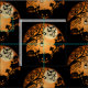 Illustration de scène d'Halloween orange et noir incorporant une silhouette d'un cimetière d'église avec des pierres tombales, des chauves-souris qui sortent du beffroi contre une lune fantomatique, un chat noir sur le toit et une araignée et toile suspendue à un arbre nu. Idéal pour l'automne et la saison d'Halloween comme un régal pour vous-même ou un membre de la famille précieux pour les faire se sentir spécial. Illustration d'art numérique unique dessinée à la main et exclusive à HJ Graphic Design à l'aide de Vectornator.