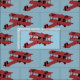 Les biplans vintages rouges de jouet jouent sur le décor de maison de la pièce d'arrière - plan de tissu de motif du garçon bleu de fror