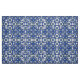 Elégant design de tissu décoratif avec un motif damassé transparent en bleu et blanc.