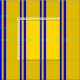 Ce design présente un motif de rayures aux couleurs bleu et jaune.