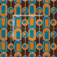 Tissu Bleu rétro, orange et Brown