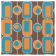 Des rectangles et cercles orange et bleu sur un arrière - plan marron s'inspirent des motifs rétro.