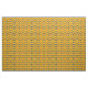 Ce tissu à thème indien présente des illustrations d'éléphants ornés de bijoux en bleu royal avec des accents géométriques rouges contre un arrière - plan jaune doré. L'impression sur ce matériau est non directionnelle, ce qui le rend parfait pour tout projet de couture.