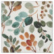 Joli tissu avec bleu/turquoise, rouille/orange brûlé, et sauge feuilles d'aquarelle verte sur blanc.