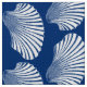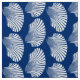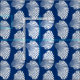 Tissu dans un motif d'impression en bloc, basé sur une coquille de pétoncle, en blanc sur un arrière - plan bleu marine / indigo