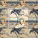 Vintage Pinup Blonde Bikini Modèle agenouillé au bord du sable alors que les vagues l'éclaboussent, pour customiser