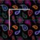 Boho paisley motif, grande répétition avec violets, bordeaux, or, perwinkle bleu sur arrière - plan noir.