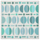 Motif moderne de style vintage du milieu du siècle avec des boules géométriques, des formes, des points et des lignes. Tons bleu-vert et blanc.