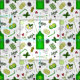 Motif illustré à la main de bouteilles de gin, de cocktails, de brasseurs, de tranches de citron et de chaux et de baies de genévrier