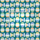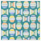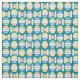 Ajoutez une touche vintage à votre prochain projet de couture avec ce tissu qui présente des illustrations de cuisine en verre blanc de style rétro mélangeant des bols illustrés de pois en bleu royal, jaune, orange et vert.
