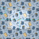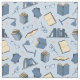 Tissu bleu pâle avec motif cool de livres bleus, lampes de table et lunettes de lecture