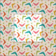 C'est classique boomerangs modernes du milieu du siècle motif avec des étoiles atomiques en orange, rose, rouge, vert et turquoise sur arrière - plan crème légère.
