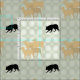 Une silhouette d'ombre noire d'un Collie frontalier travaille un groupe de quatre moutons en silhouette brune. L'arrière - plan est cedabb Olive Green.