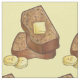 Design présente une illustration originale sur le thème de la nourriture de deux tranches d'un pain de banane fraîchement cuit, fait maison, avec une banane coupée en tranches et une pat de beurre sur le dessus. Idéal pour votre boulanger préféré, pâtissier, gourmet ou fan de pain à la banane !