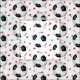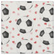 Ce tissu sur le thème du football est composé d'un simple motif à goutte de balles de football noir et blanc entouré de coeurs de confettis rose et rouge éparpillés sur un arrière - plan blanc - les boules de football mesurent environ 1-1/2 pouces, mais le motif peut être mis à l'échelle à votre goût - par katz_d_zynes