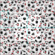 Ce tissu sur le thème du football présente un motif aléatoire de balles de football de taille variée et des coeurs de confettis rose et rouge éparpillés sur un arrière - plan blanc personnalisable - les plus grandes boules de football du motif mesurent environ 2 pouces, mais le motif peut être mis à l'échelle selon vos goûts - par katz_d_zynes