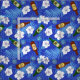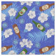 Tissu hawaïen bleu cobalt tendance avec bouteilles de bière brune et verte, sur des fleurs tropicales et des feuilles de palmiers