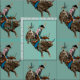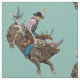 Ce design vintage d'Americana présente un cow-boy à cheval sur un taureau. Cette renaissance évoque une décoration occidentale ancienne, qui fonctionne bien dans des cadres traditionnels, cabine, voire modernes. Changez la couleur arrière - plan pour l'adapter à votre décor.