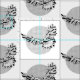 Illustration moderne et géométrique d'un faucon de faucon. L'oiseau noir et blanc vole en face d'une lune de mi-teinte.