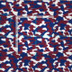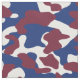 Un motif de camouflage en bordeaux, bleu et blanc.