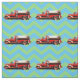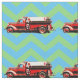 Camion rouge vintage sur un arrière - plan en zigzag vert pâle.