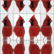 Un motif abstrait des cardinaux brillants de rouge cramoisi ornent cette belle conception de tissu. Le cardinal du nord est vraiment un bel oiseau.