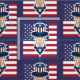 Tissu avec l'illustration de l'oncle Sam avec le drapeau américain comme arrière - plan, 4 juillet dessin patriotique de Maxi Harmony / Radka Kavalcova ; version bleue