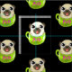 Cette copie de tissu a un peu de carlin dans une tasse. La copie de tissu est parfaite pour n'importe quel amant de carlin. faites les sacs, les couvertures et plus.