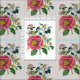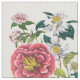 Illustration botanique à l'ancienne des camélias en rose, rouge et blanc.