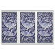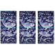 Ma fresque originale en céramique bleue et blanche koi est reproduite sous forme de trois panneaux sur une cour de tissu.