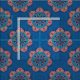 Un design de belles fleurs de mandala dessinées à la main dans un style décoratif, disposées dans un motif symétrique sans couture. Couleur bleu marine et rose saumon.