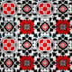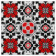 Tissu Carrelage marocain floral, rouge profond, noir et