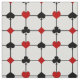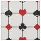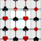 Ce tissu présente un design original d'inspiration Art Déco avec un thème de jeu de carte composé de symboles de couleur rouge vif et noir (diamant, club, coeur & pique) centré où les lignes horizontales et verticales épaisses et noires d'une grille se rencontrent, avec un grand champ de texte personnalisé pour votre monogramme au centre.