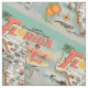 Ce motif fait d'une carte postale vintage de Floride et présente les attractions touristiques de l'Etat, ainsi que des illustrations colorées d'oranges, d'un alligator, d'un palmier et d'une beauté balnéaire. Un kitsch amusant de l'histoire de la Floride.