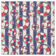 Tissu nautique avec ceinture de sauvetage sur bandes bleu marine et blanc
