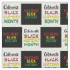 Élégant MOIS D'HISTOIRE NOIRE Tissu en typographie rouge, jaune, vert et noir dans un motif carrelé avec effet damier. Autres versions disponibles.