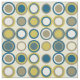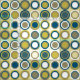 Tissu Cercles du milieu du siècle Motif Bleu Jaune Tan B