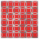 Conception moderne de la moitié du siècle basée sur le motif de verrouillage classique de cercles - médias mélangés graphiques aux nuances de gris-clair sur un arrière - plan rouge-foncé