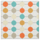 Tissu Cercles Tan Crème Orange Turquoise Rétro