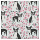 Tissu Cerisiers de Boston Terrier en fleurs bleu clair