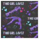 Cette fille aime la gymnastique - chargée de coeurs colorés en rose, violet, turquoise et blanc partout.