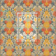fleurs et feuilles dans les tons jaune, orange et bleu-gris sur un arrière - plan crème.