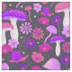 Ce tissu est décoré de champignons et de fleurs éclatants, psychédéliques et illustrés, dans des tons rose chaud et violet gras.