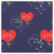 Un motif sans faille de notes musicales en forme de coeur d'une variété de couleurs arc-en-ciel au-dessus du coeur rouge contre l'arrière - plan bleu marine foncé. Amour, musique, design romantique "The Singing Heart" pour tous. Vous pouvez modifier le motif, la taille et l'angle de rotation du carrelage. Soyez créatif, utilisez ce beau tissu pour n'importe quel projet et soyez heureux !
