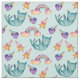 C'est une illustration d'un chat vert flottant dans le ciel avec des arcs-en-ciel, des nuages, des étoiles filantes et des coeurs. Elle a été peinte avec l'aquarelle et transformée en motif.