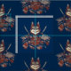 Tissu Chat Samurai guerrier japonais
