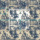 L'élégant classique toile de jouy motif dispose d'un château dans un cadre boisé. La couleur Delft de bleu foncé est imprimée sur l'ivoire vieilli arrière - plan. Se déroule naturellement avec conte de fées, princesse ou événements de style vintage. L'impression est une répétition en mosaïque.